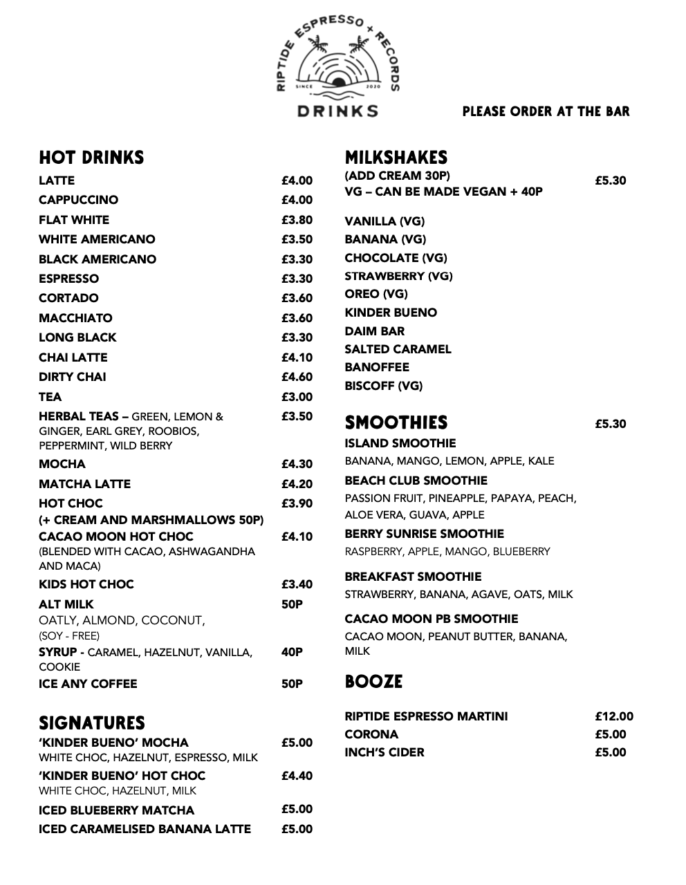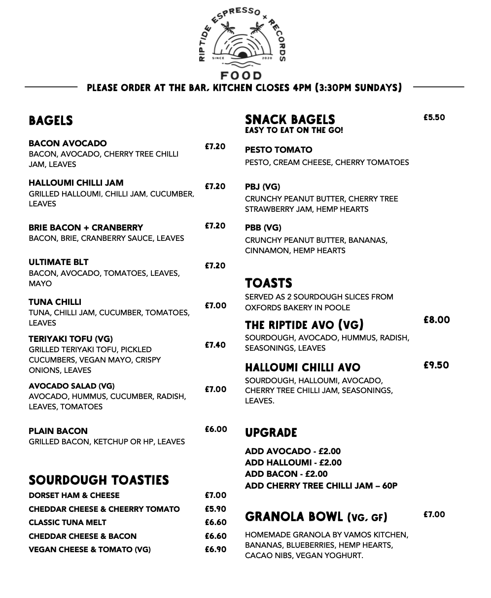 Our coffee is roasted locally by Carve Coffee Roasters in Swanage. We work closely with them to create our own seasonal blends that are exclusively served at Riptide.